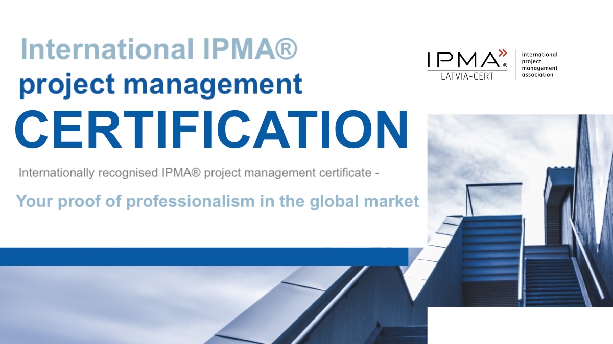 IPMA Latvia-CERT the Certification Body of Latvian National Project Management Association (LNPMA) conducts internationally recognised project manager certification, which is accepted in more than 70 IPMA (International Project Management Association) member countries.